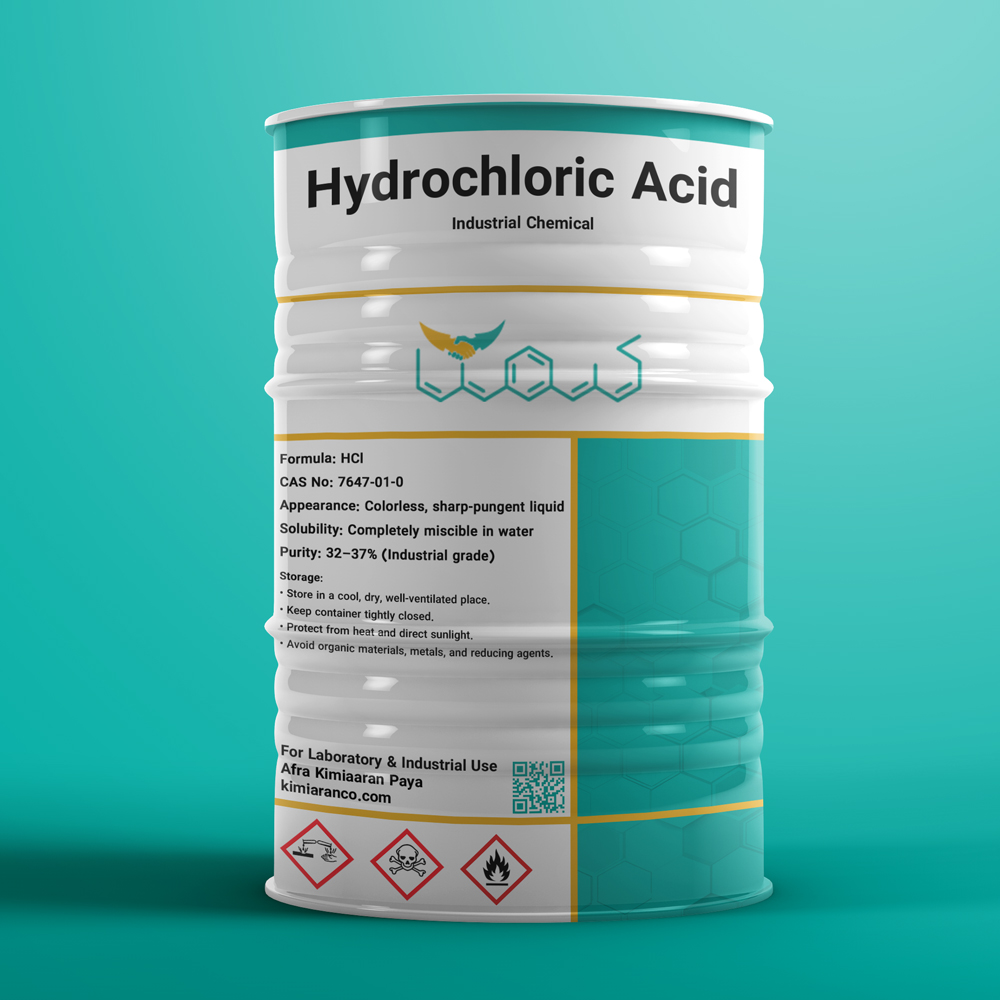 اسید کلریدریک کیمیاران با درجه خلوص بالا (۳۰ تا ۳۷ درصد) عرضه میشود و از مواد اولیه با کیفیت صنعتی تولید شده است که برای مصارف گوناگون از جمله اسیدشویی فلزات، تصفیه آب، و فرآیندهای شیمیایی مناسب است.